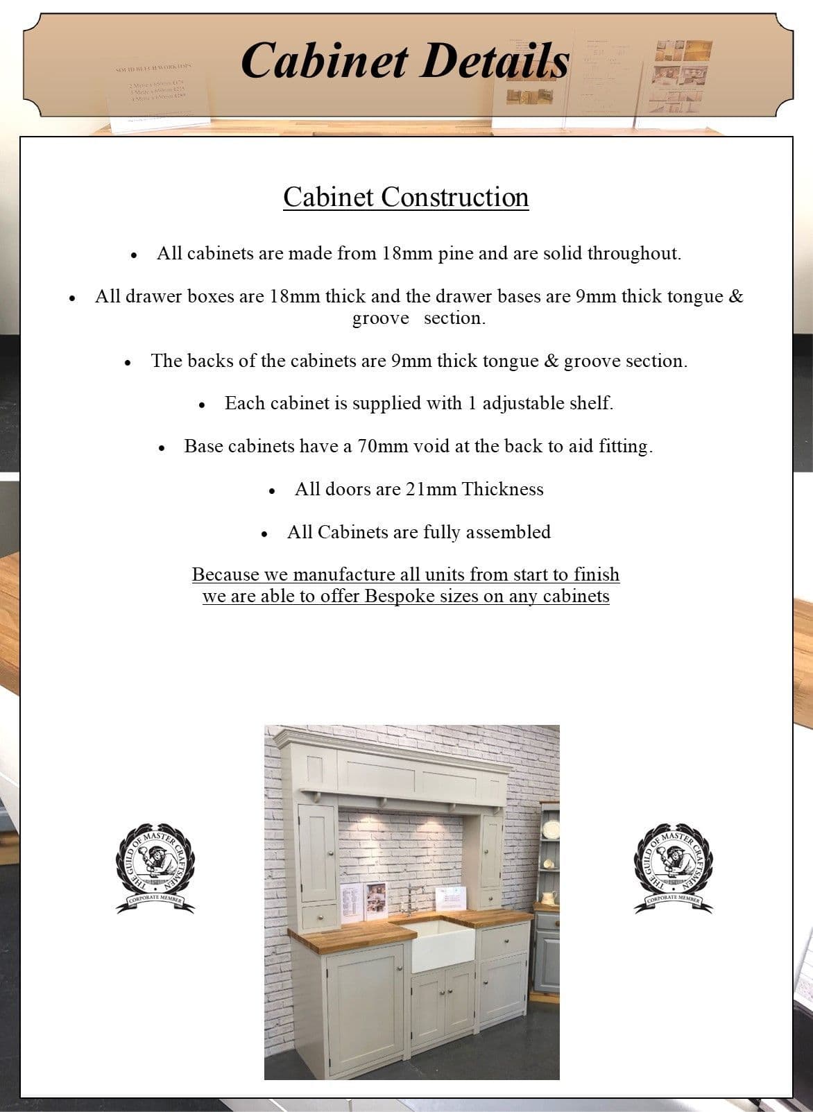 Traditional Kitchens Home / Traditional Kitchens / Traditional Style Pine Belfast Utility Unit with doors Traditional Style Pine Belfast Utility Unit with doors View more images Traditional Style Pine Belfast Utility Unit with doors £1,499.00 RRP: £2,023.00 Enquire Add to your Wish List Description Traditional Style, Solid Pine Belfast Utility Fitment 193cm Wide with 40mm Solid Oak Worktop. (Including Sink, Taps, doors & Worktop with sink cut out and drainer grooves) Please note: this product doesn't come with any shelves. Appliances Not Included Designed to house free standing appliances but can also house integrated appliances. Hand made & finished in shaker style this unit & Worktop is supplied unfinished ready to paint, varnish or oil. Constructed from Pine and solid throughout. Size: Height 900mm Width: 1930mm x Depth: 650mm Please note: We do also offer a 50% deposit scheme where we take a 50% deposit to secure your order and collect the remaining balance before we deliver or you collect your order. If this is something that you are interested in, please request an invoice by emailing us at sales@furniturenation.co.uk Fully assembled Belfast unit (End panels and doors are delivered Flat packed) Please Note: It is recommended that the fitting of this unit is undertaken professionally. All sizes listed are our standard sizes but we are able to offer fully bespoke sizing- contact us via email for further assistance with size changes. All orders are based on collection but we do also offer a delivery service, please refer to our delivery page for delivery prices or contact us with your delivery address via email for a price. Our Factory and showroom is based in the West Midlands where all units are manufactured on site. click the image below to view our full brochure Fitting instructions guide Dimensions guide Frequently Asked Questions. F A QsAttributes Brand: Furniture Nation You May Also Like Traditional Style Pine 300mm Wide 1 Door Kitchen Base Unit £279.00 £376.00 More details Quickview Traditional Style Pine 400mm Wide 1 Door Kitchen Base Unit £279.00 £376.00 More details Quickview Traditional Style Pine 500mm Wide 1 Door Kitchen Base Unit £309.00 £417.00 More details Quickview Traditional Style Pine 600mm Wide 1 Door Kitchen Base Unit £309.00 £417.00 More details Quickview Traditional Style Pine 300mm Wide 1 Door & 1 Drawer Kitchen Base Unit £309.00 £417.00 More details Quickview Traditional Style Pine 400mm wide 1 Door & 1 Drawer Kitchen Base Unit £309.00 £417.00 More details Quickview Traditional Style Pine 500mm Wide 1 Door & 1 Drawer Kitchen Base Unit £349.00 £471.00 More details Quickview Traditional Style Pine 600mm Wide 1 Door & 1 Drawer Kitchen Base Unit £349.00 £471.00 More details Quickview Traditional Style Pine 2 Door Baby Belfast Kitchen Unit (Overall width is 530mm) £239.00 £322.00 Add to cart Quickview Traditional Style Pine 2 Door 600 Belfast Kitchen Base Unit (Overall width is 670mm) £249.00 £336.00 More details Quickview Traditional Style Pine 2 Door 800 Belfast Kitchen Base Unit (Overall width is 870mm) £349.00 £471.00 Add to cart Quickview Traditional Style Pine Belfast Utility Unit (No appliance doors) £1,249.00 £1,726.00 Add to cart Quickview Traditional Style Pine Utility Fitment with stackable appliance storage £1,379.00 £1,861.00 More details Quickview Traditional Style Pine 300mm Wide 3 Drawer Kitchen Base Unit £329.00 £444.00 More details Quickview Traditional Style Pine 400mm Wide 3 Drawer kitchen Base Unit £329.00 £444.00 More details Quickview Traditional Style Pine 500mm Wide 3 Drawer Kitchen Base Unit £379.00 £511.00 More details Quickview Traditional Style Pine 600mm Wide 3 Drawer Kitchen Base Unit £379.00 £511.00 More details Quickview Traditional Style Pine 600mm Wide 3 Drawer Ascending Kitchen Base Unit £399.00 £538.00 More details Quickview Traditional Style Pine 800mm Wide 3 Drawer Ascending Kitchen Base Unit £629.00 £849.00 More details Quickview Traditional Style Pine 1000mm Wide 2 Door Kitchen Base Unit From: £539.00 £727.00 More details Quickview Traditional Style Pine 800mm Wide 2 Door Kitchen Base Unit From: £469.00 £633.00 More details Quickview Traditional Style Pine 1000mm Wide 2 Door & 2 Drawer Kitchen Base Unit £599.00 £808.00 More details Quickview Traditional Style Pine 800mm Wide 2 Door & 2 Drawer Kitchen Base Unit £549.00 £741.00 More details Quickview Traditional Style Pine 1000mm Left Hand Corner Return Kitchen Base Unit (1100mm width Needed) £479.00 £646.00 More details Quickview Traditional Style Pine 1000mm Right Hand Corner Return Kitchen Base Unit (1100mm Width Needed) £479.00 £646.00 More details Quickview Traditional Style Pine 450mm Wide Integrated Appliance Door £119.00 £160.00 Add to cart Quickview Traditional Style 450mm Wide Integrated Dishwasher Door £129.00 £174.00 Add to cart Quickview Traditional Style Pine 600mm wide Integrated Appliance Door £129.00 £174.00 Add to cart Quickview Traditional Style Pine 600mm Wide Integrated Dishwasher Door £139.00 £187.00 Add to cart Quickview Traditional Style Pine 600mm Wide Cooker Base Housing Unit £279.00 £376.00 Add to cart Quickview Traditional Style Pine 600mm Wide Double Oven Housing Kitchen Larder Unit £659.00 £889.00 More details Quickview Traditional Style Pine 600mm Wide Single Oven Housing Kitchen Larder Unit £649.00 £889.00 More details Quickview Traditional Style Pine 400mm Wide Kitchen larder Unit £569.00 £768.00 More details Quickview Traditional Style Pine 500mm Wide Kitchen Larder Unit £659.00 £889.00 More details Quickview Traditional Style Pine 600mm Wide Kitchen Larder Unit £659.00 £889.00 More details Quickview Traditional Style Pine 650mm Wide Fridge Freezer Kitchen Larder Unit (50/50 Split) £659.00 £889.00 More details Quickview Traditional Style Pine 650mm Wide Fridge Freezer Kitchen Larder Unit (70/30 Split) £659.00 £889.00 More details Quickview Traditional Style Pine 675m